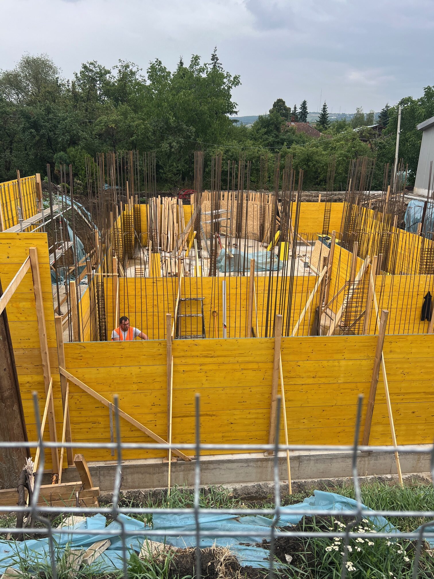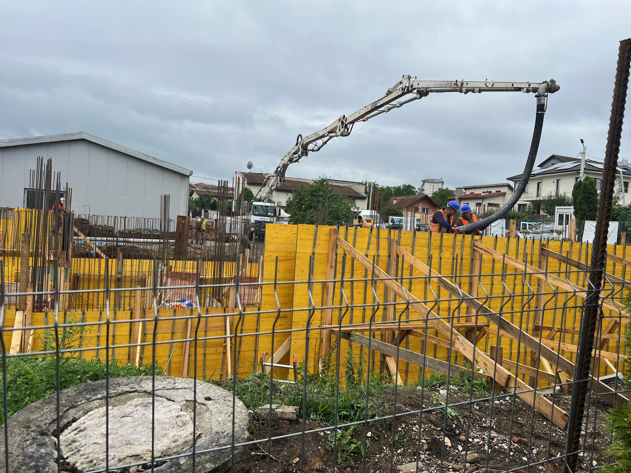 A început o nouă etapă a lucrărilor. După turnarea și decofrarea radierului, a fost necesară o scurtă pauză, timp în care betonul a fost lăsat „să lucreze” în tihnă. Temperaturile ridicate au impus udarea frecventă a acestuia, de mai multe ori pe zi.